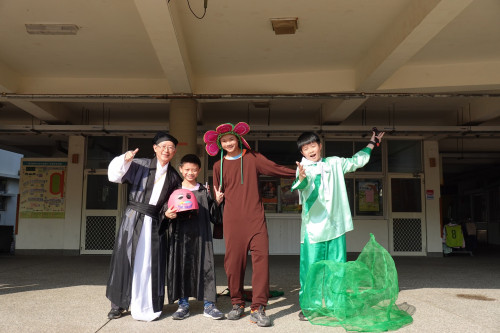 ?育華國小師生透過雙語角色扮演,重現經典寓言故事《The lion and the mouse》。學生扮演機靈的小老鼠、威風的獅子等小動物們,老師扮演提供獅子乘涼的大樹,設陷阱捕捉獅子的獵人則由校長扮演,從中明白「No act of kindness is ever wasted.」的道理,寓教於樂的表演讓大家在歡樂中學習,也度過了一個難忘的兒童節!