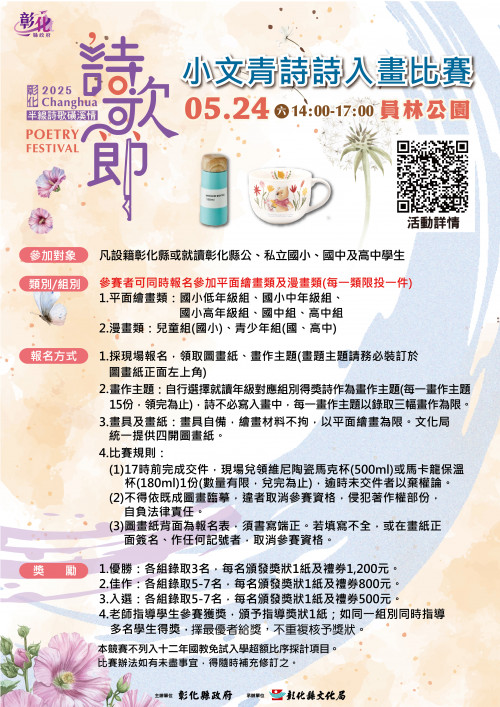 五、 報名方式:採現場報名,現場領取圖書紙及詩作主題。