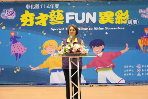 縣府秉持「照顧好每一個孩子」的理念,全年推動多項關懷活動,包括寒暑假慢飛育樂營、特愛陪伴活動、親子融合戶外教育等。每個孩子都有值得被肯定的特質,而「夯才藝 FUN異彩」競賽正是展現多元藝能的最佳舞台,鼓勵身心障礙學生發揮優勢、展現自我,並培養團隊合作精神。透過比賽,學生們不僅能夠實現五育均衡發展,更有機會向大眾展示學習成果,展現生命的無限可能,更落實「彰化有愛,特教無礙—特愛FUN異彩」的融合教育理念,讓每位孩子都能在舞台上閃耀光芒。