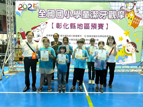 由衛生福利部口腔健康司、教育部國民及學前教育署及中華民國牙醫師公會全國聯合會共同指導的年度大型口腔衛教活動—「2025年國小學童潔牙觀摩賽」,今(8)日上午彰化縣政府與彰化縣牙醫師公會於彰化縣立體育館聯合主辦彰化縣地區預賽,彰化縣長王惠美、中華民國牙醫師公會全國聯合會宋政隆理事、彰化縣牙醫師公會理事長陳俊雄等人與會為小選手們加油打氣,牙醫師公會也動員50位專業牙醫師與40位志工、助理共同投入本次活動的推行,展現醫界對兒童口腔健康的重視與投入。本次競賽有來自縣內24所國小、近200位口腔小尖兵同場競技,角逐代表本縣參加全國總決賽的資格。獲選隊伍將代表彰化縣,於今(114)年10月28日前往新北市參加全國總決賽。