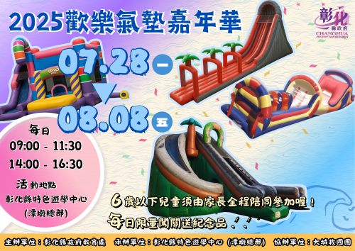 每天上午9:00-11:30 & 下午2:00-4:30 ✨ ? 沁涼水樂園 ? 彈跳勇士大冒險 ? 兩大主題氣墊,同時登場,快和家人一起開心翻滾吧~ ? 每日還有闖關送紀念品(數量有限,送完為止) ⚠️ 溫馨提醒 ?? 6歲以下兒童需由家長全程陪同參加,確保安全快樂滿分! ? 孩子的歡笑尖叫聲,就是夏天最棒的交響曲! ✦•··········⋆⭑⋆⋆⋆⋆⋆⋆⋆⭑⋆··········•✦ |