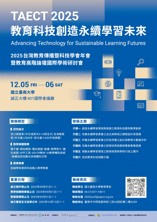 七、各項徵稿資訊及相關表件詳情請參考研討會官網:https://sites.google.com/view/taect2025/。