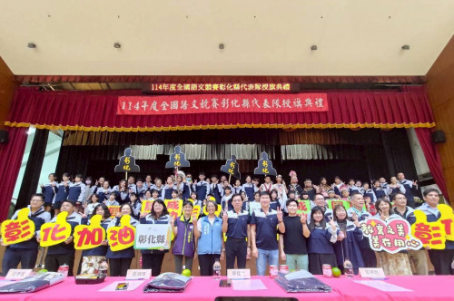 彰化縣政府於今(15)日在彰興國中隆重舉行「全國語文競賽彰化縣代表隊授旗典禮」,教育處副處長張淑珠親自授旗予代表隊,為競賽員加油打氣並寄予厚望。張副處長同時頒發感謝狀予8位語文競賽集訓召集人及12位助教,感謝他們為培育優秀競賽員所付出的辛勞與努力。這次授旗典禮正是縣府對語文教育的高度重視及精心栽培的具體展現。