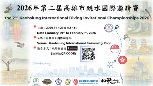 | [類別] 標題 | [11412026] 轉知:高雄市政府運動發展局函轉健康運動發展協會辦理「2026年第二屆高雄市跳水國際邀請賽」,歡迎踴躍參加,請查照。 |