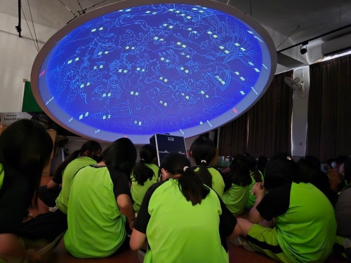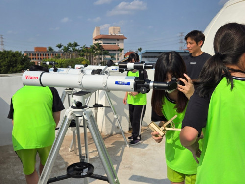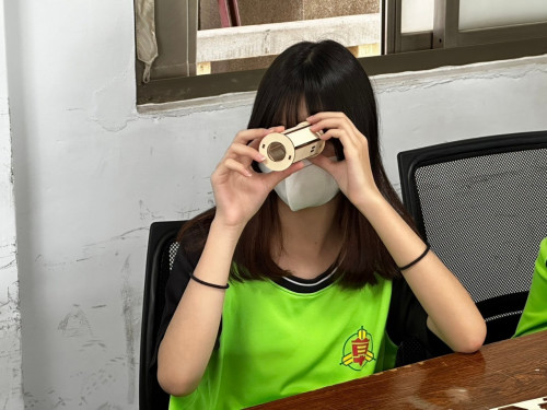 下午回到北斗國中 遨遊天地課程,老師帶領學生們透過自己的雙手一步步製作簡易式望遠鏡,製作完成後來到頂樓的天文館使用望遠鏡來觀看遠方。