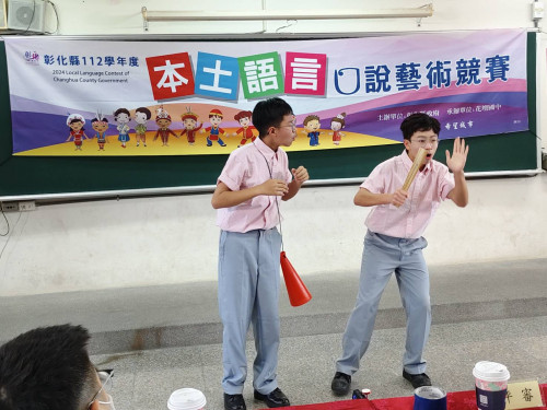 本縣112學年度本土語言口說藝術競賽113年3月23日於花壇國中辦理,今年報名隊伍計有閩南語答喙鼓國小組3-4年級5隊、國小組5-6年級8隊及國中組5隊。本項競賽提供學生展現本土語言學習成果的機會與舞台,以提高學生對學習本土語言的興趣。今年的參賽選手個個說唱俱佳,生動活潑的表演,贏得評審讚聲連連,值得嘉許。