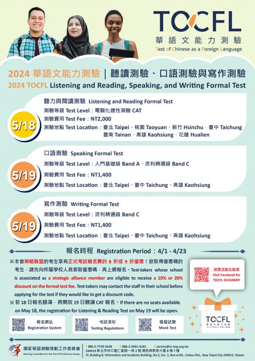 - 為國家華語測驗推動工作委員會策略聯盟單位,所屬外籍人士可享九折優惠。