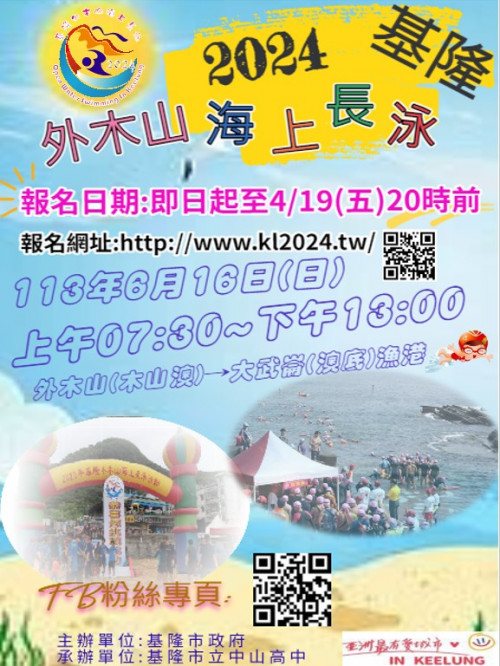 | [類別] 標題 | [11303454] 轉知:有關基隆市政府委請中山高中承辦「2024年基隆外木山海上長泳活動」,歡迎踴躍參加,請查照。 | ||