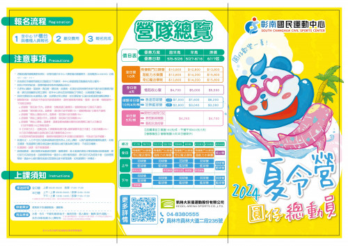 | [類別] 標題 | [11303635] 轉知:彰南國民運動中心將辦理「2024年度兒童夏令營運動休閒課程」活動訊息 | ||