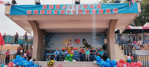 彰化縣田中鎮東和國小原有運動場PU跑道,因長期使用破損不堪,為保障學生學習活動與民眾運動休憩的安全,經縣府與民意代表積極爭取,獲中央補助766萬元經費完成整建。20日上午辦理112學年度校慶運動會暨PU跑道啟用典禮,彰化縣副縣長林田富代表縣長王惠美與會,祝福東和國小112學年度校慶活動圓滿成功,期望運動場PU跑道的啟用,能提供師生與社區民眾一個安全、健康、友善、舒適的運動休憩環境。