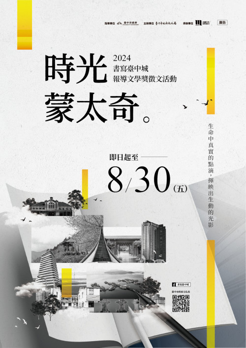 | [類別] 標題 | [11304441] 轉知臺中市政府文化局辦理2024書寫臺中城報導文學獎徵文活動,歡迎踴躍參加。 |