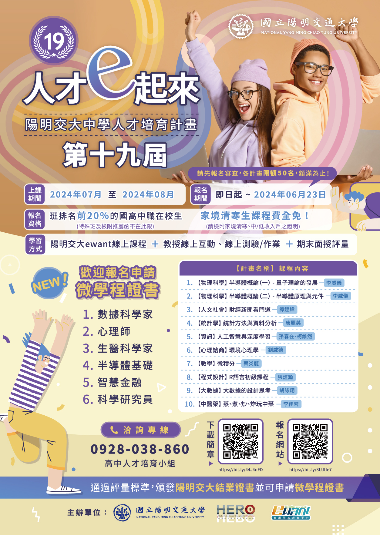 | 相關連結 | http://詳細計畫內容請至本校中學人才培育計畫網站https://ewanths.nycu.edu.tw查詢、報名 | ||