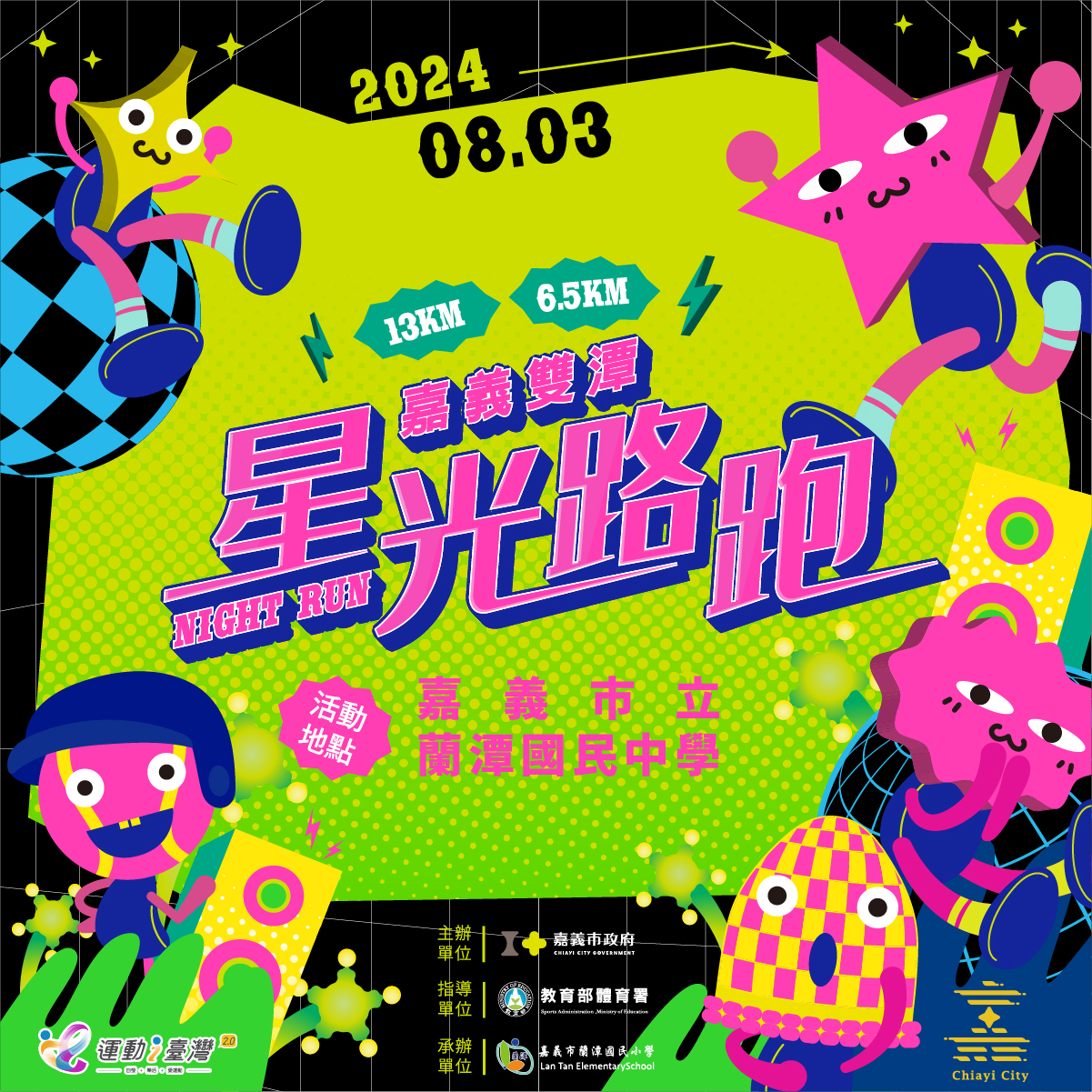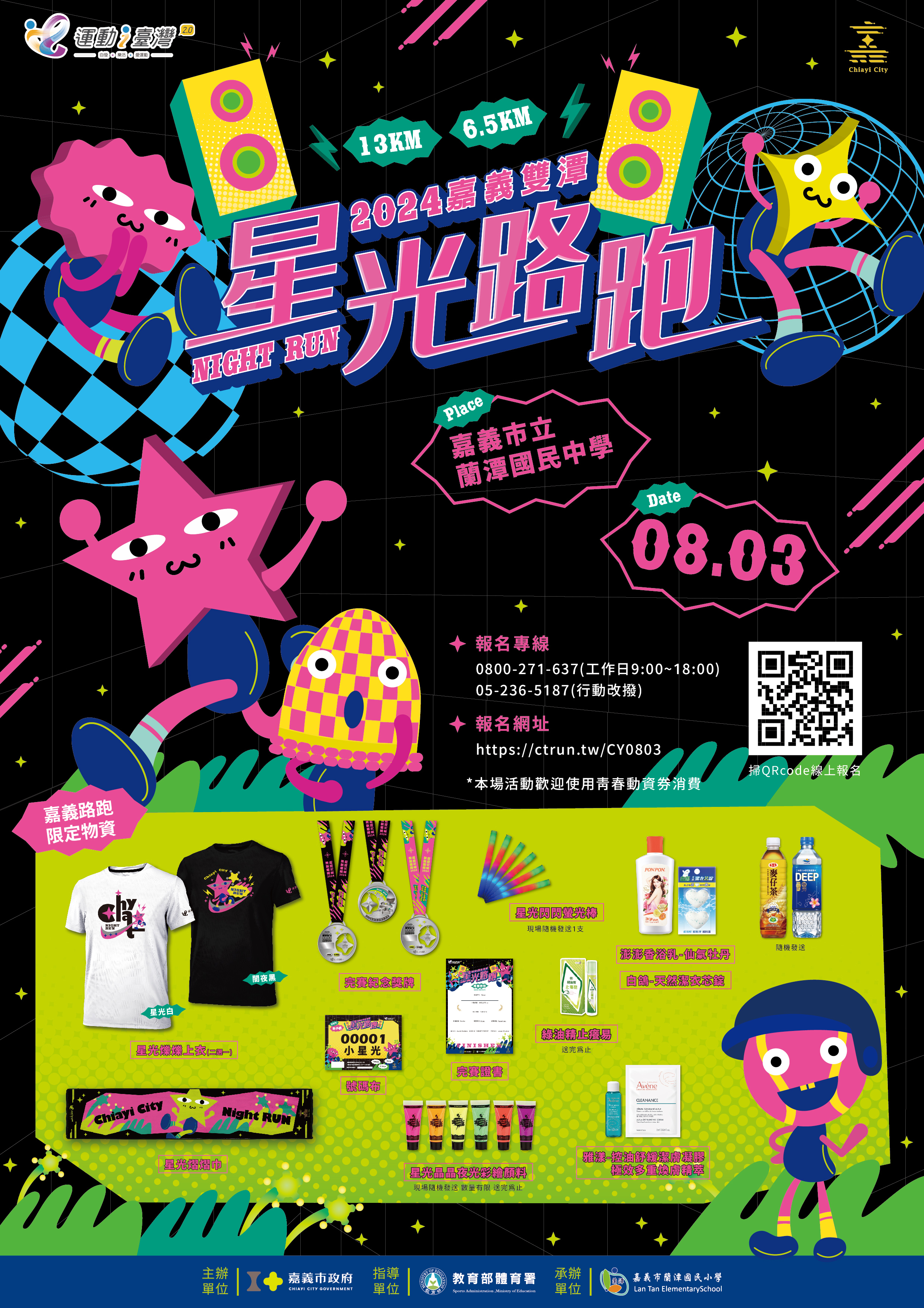| [類別] 標題 | [11305397] 轉知:嘉義市政府主辦教育部體育署運動i臺灣2.0計畫「2024嘉義雙潭星光路跑」宣傳海報,歡迎踴躍報名參加,請查照。 |