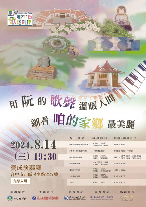 二、為鼓勵地方特色歌謠傳唱風氣,培養在地音樂藝術人才,創作地方特色歌謠,以達傳承、發揚、創新,深化本土文化認同之目標,爰辦理推廣音樂會。