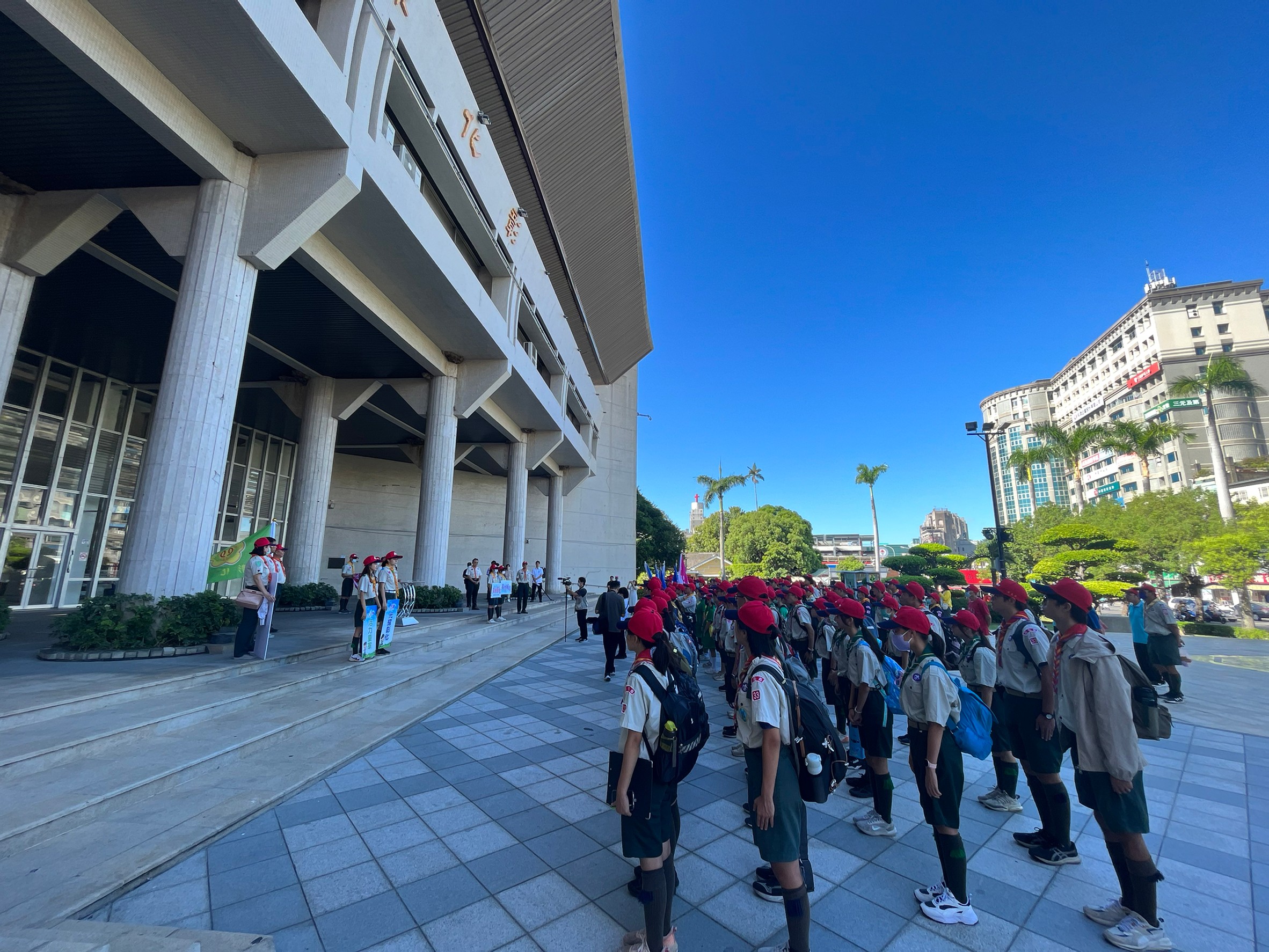 睽違6年的「中華民國童軍第12次全國大露營」自7月10日起至16日一連七天六夜在臺南走馬瀨農場舉行,10日上午本縣童軍代表團來自全縣各地的6部遊覽車,浩浩蕩蕩的匯聚於縣府府前廣場,縣長王惠美親自授旗予代表團分營區副執行秘書賴良助校長,並頒發加菜金,期勉所有童軍夥伴勇敢接觸新的人事物、學習團隊合作精神、學習尊重大自然、並與來自各國的朋友多交流,相信經過未來幾天的相聚,將成為人生中難忘的記憶,未來能以實際行動貢獻己力,創造更加美好的人生。 |