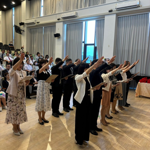 彰化縣113學年度中小學校長交接典禮於今(31)日上午在彰化藝術高中展翼館舉行,由縣長王惠美親自主持,計有國中小等42校辦理校長交接,教育處長蔡金田擔任監誓人,主計處長蕭秀瑛擔任監交人。王縣長感謝各校歷任校長對教育的奉獻,帶領學校持續穩定發展並卓越精進,期勉各校校長未來仍與縣府團隊共同努力,深耕地方教育、開創新局並茁壯發展。