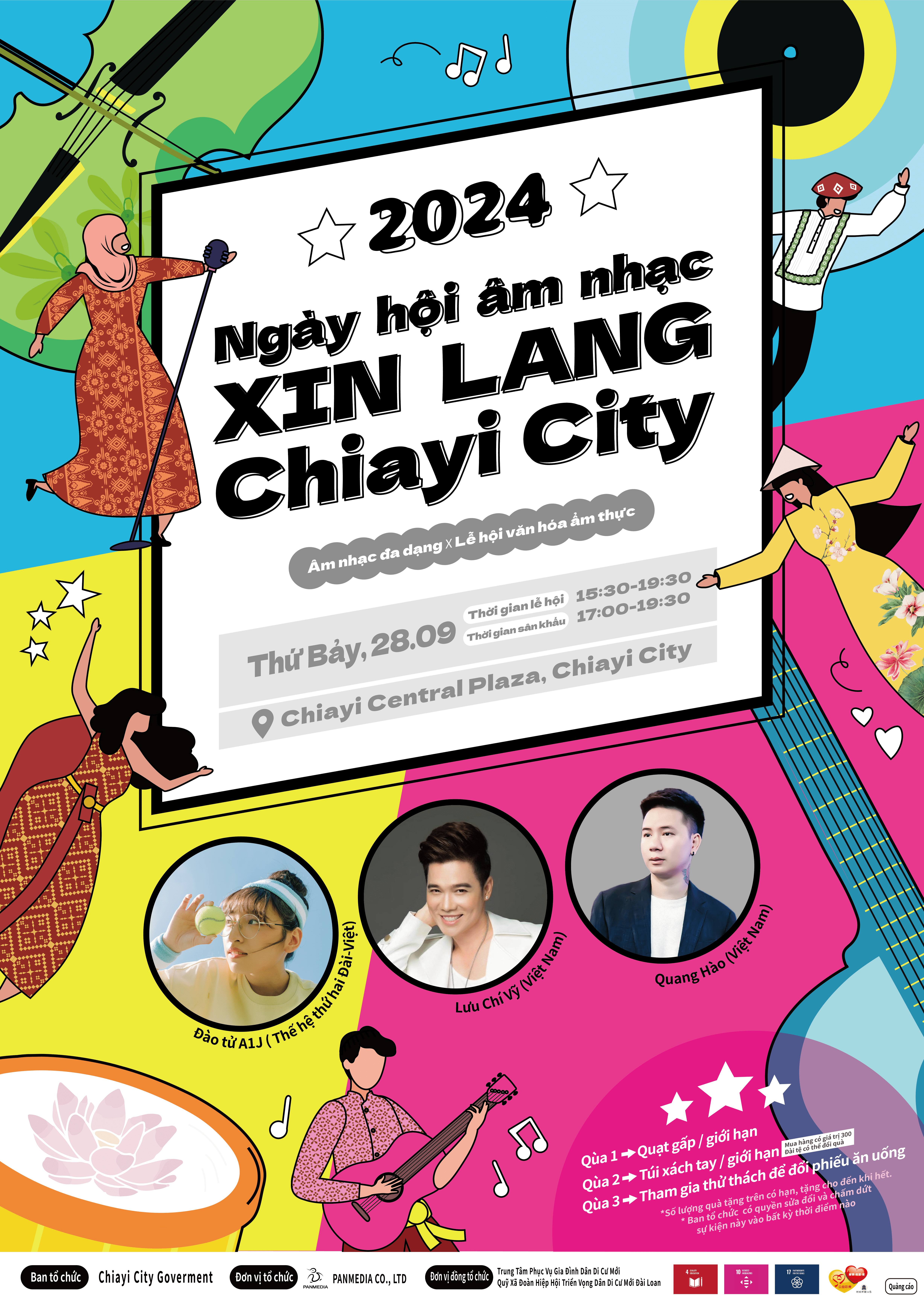 一、旨揭活動訂於113年9月28日(星期六)15時30分至19時30分假嘉義市中央廣場(嘉義市文化路與北榮街口)辦理。 二、活動邀請來自越南的異國歌手、新住民及新二代表演團體,以音樂舞蹈的交流形式進行異國音樂文化演出,並設置異國美食文創市集攤位,推動多元族群共融,竭誠歡迎一同參與。 三、本案聯絡人:嘉義市新住民家庭服務中心許淑芬社工督導員,電話:(05)231-0445。 四、檢附113年度「嘉城新浪音樂節」活動海報各1份。 |