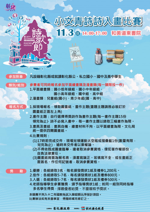 五、參加對象:設籍彰化縣或就讀彰化縣公、私立國小、國高中(職)學生。