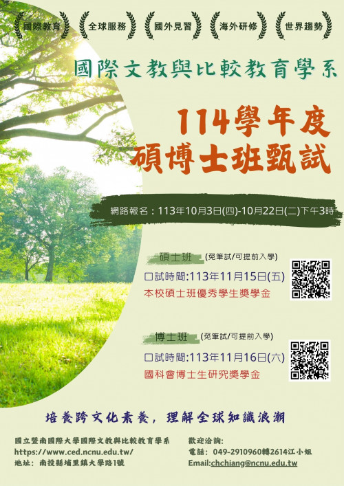二、招生簡章請於該校招生資訊網站免費下載,網址如下:https://admission.ncnu.edu.tw/。旨揭報名時間為113年10月3日至113年10月22日下午3時止,繳費時間則為113年10月3日至113年10月22日下午3時30止。
