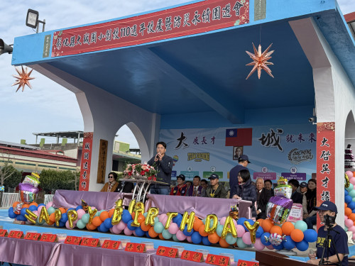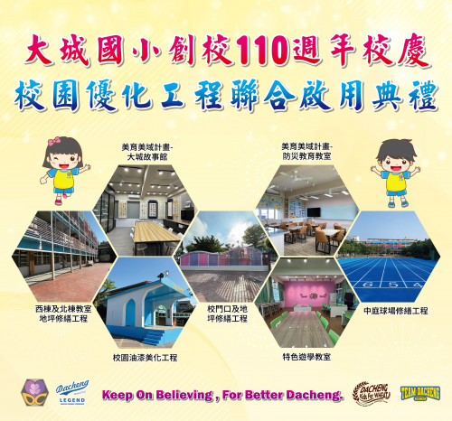 為改善校園環境並提升教學品質,大城鄉大城國小原有校門口通學步道、中庭球場、司令台及教室走廊多處破損不平,排水功能不足,經常發生淹水問題。此外,校內缺乏多功能教學場域,影響學生學習體驗。彰化縣政府因此挹注687萬元經費進行優化工程,並於14日上午舉行「大城國小110週年校慶暨防災永續園遊會及校園優化工程啟用典禮」。彰化縣政府參議柯呈枋特別代表王惠美縣長蒞臨與地方貴賓、校師生及家長共同參與,切下象徵110歲生日的蛋糕,祝福大城國小生日快樂,同時主持啟用儀式,期待嶄新的設施能夠為孩子提供安全、舒適的學習環境。
