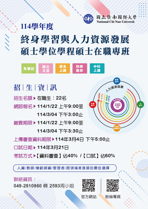 三、招生簡章下載網址: https://exam.ncnu.edu.tw/8OTJ.html。