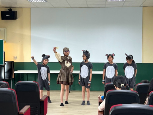 ?育華國小師生透過雙語角色扮演,重現經典寓言故事《The lion and the mouse》。學生扮演機靈的小老鼠、威風的獅子等小動物們,老師扮演提供獅子乘涼的大樹,設陷阱捕捉獅子的獵人則由校長扮演,從中明白「No act of kindness is ever wasted.」的道理,寓教於樂的表演讓大家在歡樂中學習,也度過了一個難忘的兒童節!
