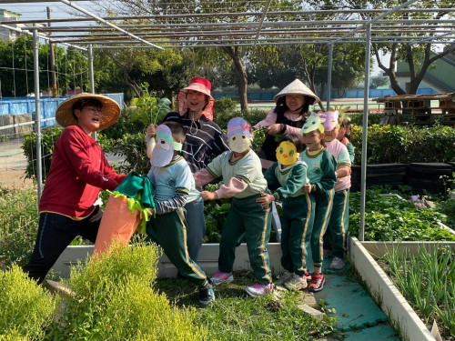 ?建新國小結合在地特產紅蘿蔔,帶領小朋友們共讀拔蘿蔔的故事,讓孩子們了解團結合作的重要,再由孩子扮成故事中的動物角色,老師們化身為故事中農人,大家在菜園裡一邊唱歌一邊拔巨無霸蘿蔔,齊快樂無比!