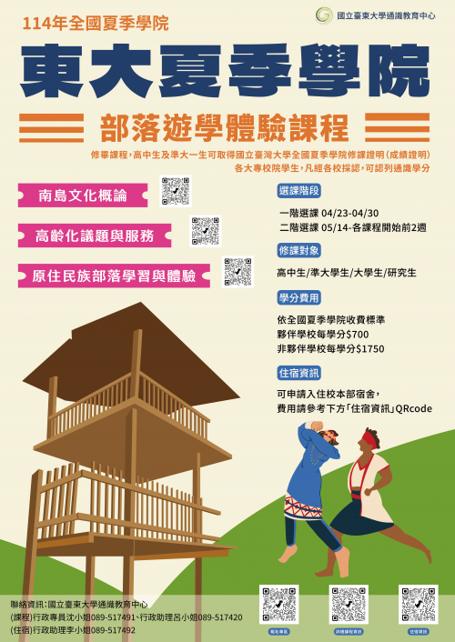 四、活動詳細資訊請參閱附件,如有疑問請逕洽國立臺東大學通識教育中心。