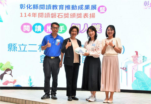 ?閱讀推手獎(個人):吳寶嘉校長(永興)、林錦鳳主任(村上)、周慧婷老師(南鎮)、倪美瑗老師(鹿港國中)、鄧憶貞老師(二林高中國中部)