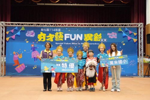 彰化縣114年度「夯才藝 FUN異彩」競賽於今(2)日上午8時在北斗國中活動中心熱鬧登場。本次比賽共吸引來自全縣20所國小、6所國中,276位多才多藝的選手參賽,角逐冠軍榮耀。彰化縣教育處張淑珠副處長特別出席,為選手們加油打氣,並頒發獎項與獎品,以肯定師生的努力與付出,並勉勵同學透過團隊合作發掘自我潛能,發展多元才藝,建立自信人生。