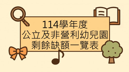 | [類別] 標題 | [11404465] 公告本縣114學年度公立及非營利幼兒園一般入園後剩餘缺額數 |