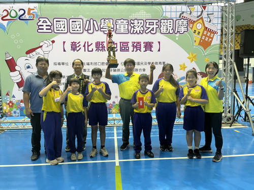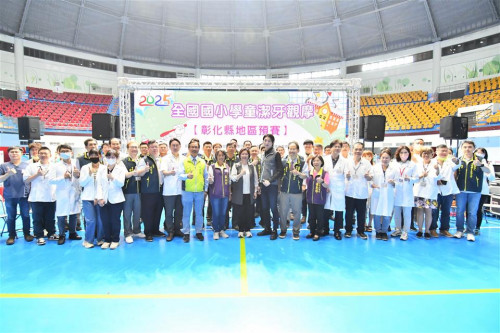 由衛生福利部口腔健康司、教育部國民及學前教育署及中華民國牙醫師公會全國聯合會共同指導的年度大型口腔衛教活動—「2025年國小學童潔牙觀摩賽」,今(8)日上午彰化縣政府與彰化縣牙醫師公會於彰化縣立體育館聯合主辦彰化縣地區預賽,彰化縣長王惠美、中華民國牙醫師公會全國聯合會宋政隆理事、彰化縣牙醫師公會理事長陳俊雄等人與會為小選手們加油打氣,牙醫師公會也動員50位專業牙醫師與40位志工、助理共同投入本次活動的推行,展現醫界對兒童口腔健康的重視與投入。本次競賽有來自縣內24所國小、近200位口腔小尖兵同場競技,角逐代表本縣參加全國總決賽的資格。獲選隊伍將代表彰化縣,於今(114)年10月28日前往新北市參加全國總決賽。