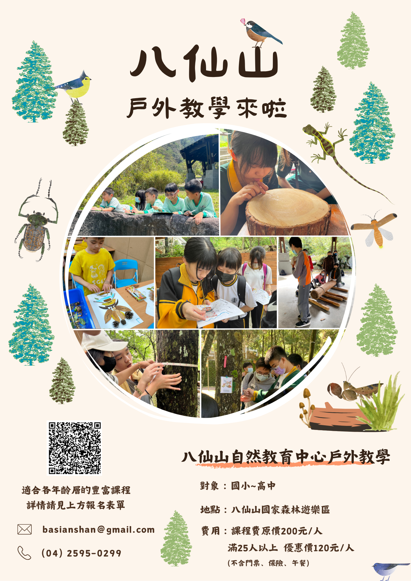 | [類別] 標題 | [11407632] 轉知有關農業部林業及自然保育署臺中分署八仙山自然教育中心114年下半年戶外教學收費優惠方案相關資訊,詳如說明,請查照。 |