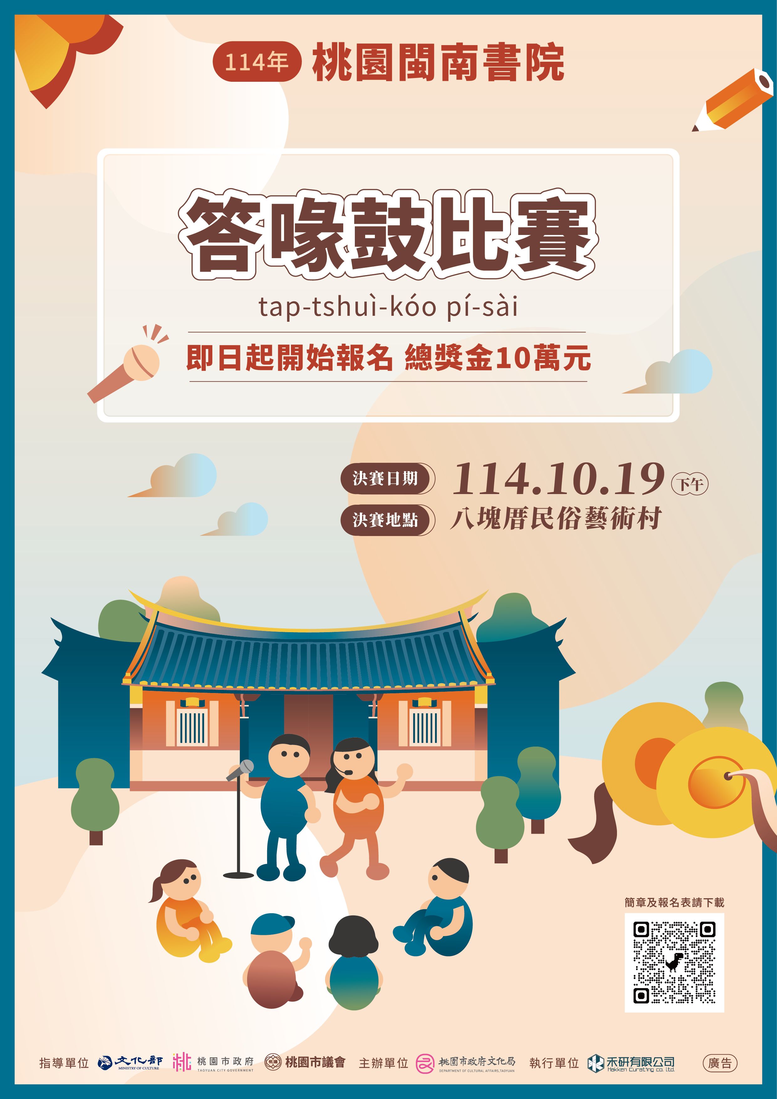 [11407977] 轉知桃園市政府文化局辦理114年桃園閩南書院系列課程「答喙鼓比賽」一案,請查照。