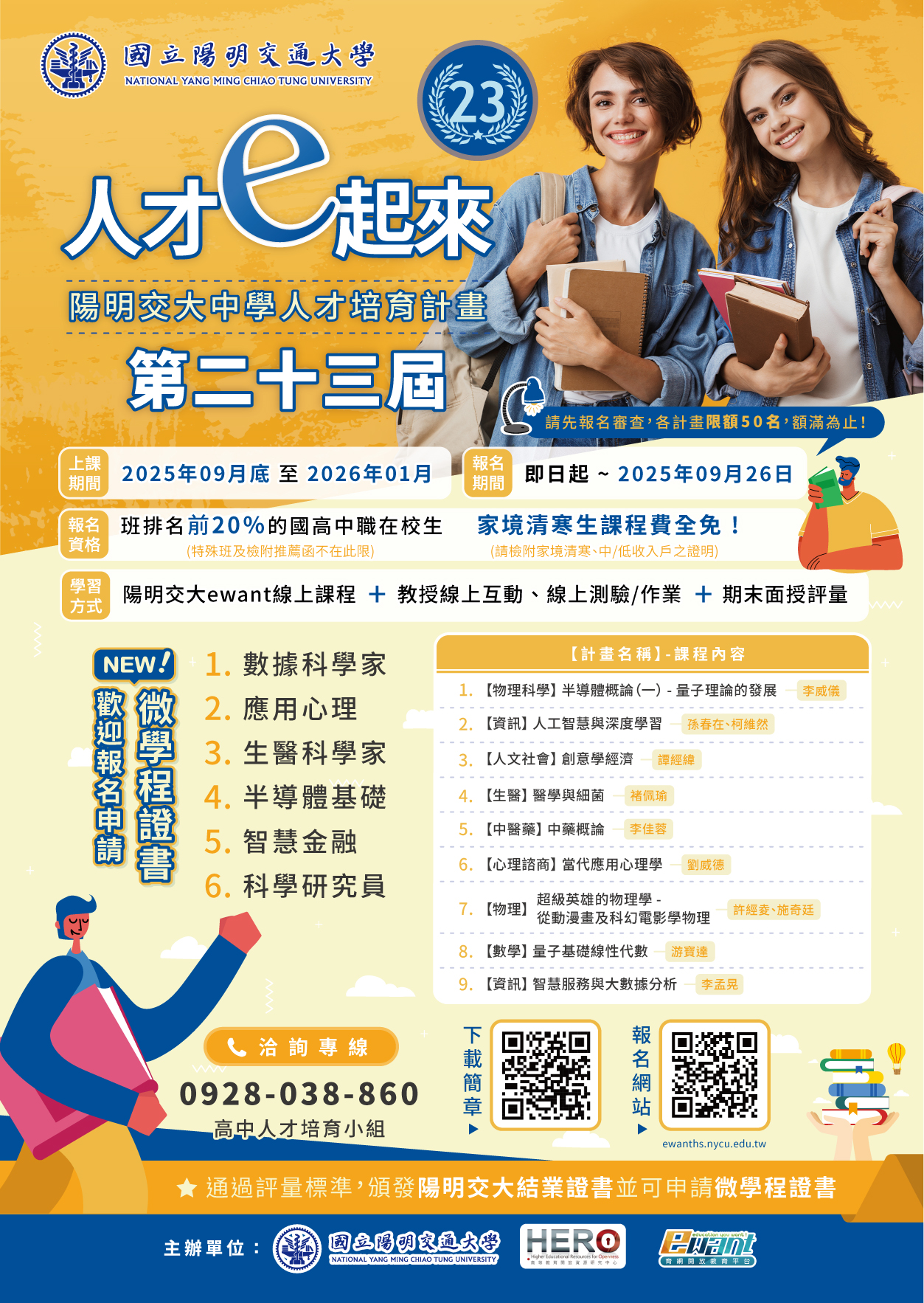 | [類別] 標題 | [11408579] 檢送國立陽明交通大學與中華國際創新教育資源交流協會辦理「第二十三期中學人才培育計畫」內容與資訊說明,請鼓勵同學踴躍參加,請查照。 | ||