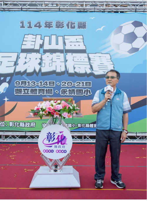 「114年彰化縣卦山盃足球錦標賽」自9月13日起於彰化縣立體育場及永靖國小熱烈開踢,歷時四天比賽,共有來自全縣各級學校33支隊伍同場競技,今(21)日圓滿落幕。縣長王惠美親臨閉幕典禮,恭賀所有選手表現優異,並向辛勤指導的教練、全力支持的家長與默默付出的志工表達誠摯感謝。 |