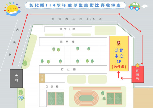| [類別] 標題 | [最速件] [11409486] 【美術比賽收件事宜重要通知】有關本縣學生美術比賽湖東國小收件位置圖,詳如說明,請查照。 |