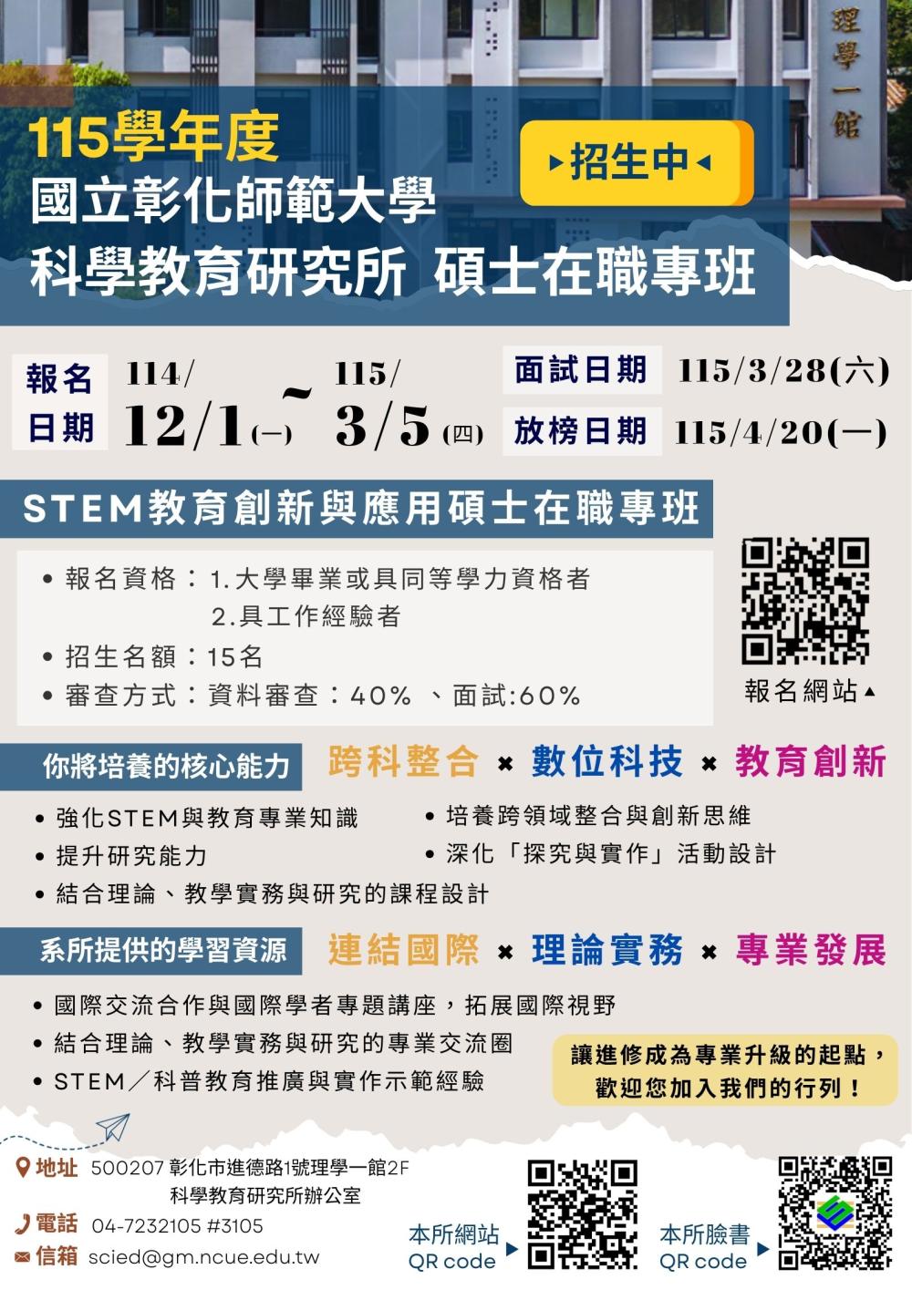 二、邀請對數理教育懷抱熱忱的中小學教師加入彰師大科教所的行列!在彰師大科教所的學術園地中精進專業、激發創新思維,攜手開啟精彩的STEM學習之門!