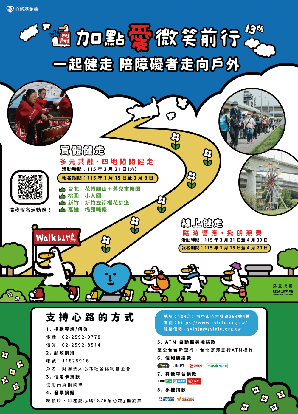 一、依據財團法人心路社會福利基金會115年2月24日心路字第1150000068號函辦理。 二、檢附健走參賽禮、報名總表及報名表各1份。 |