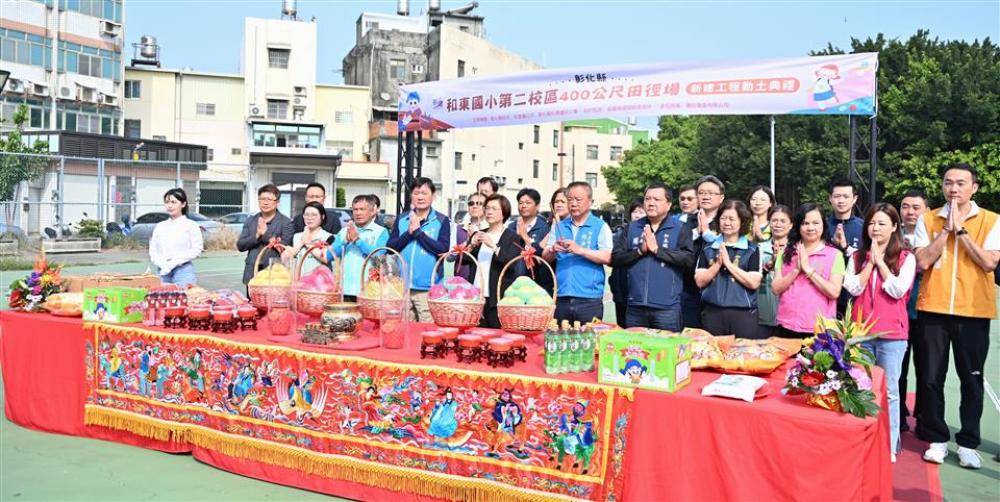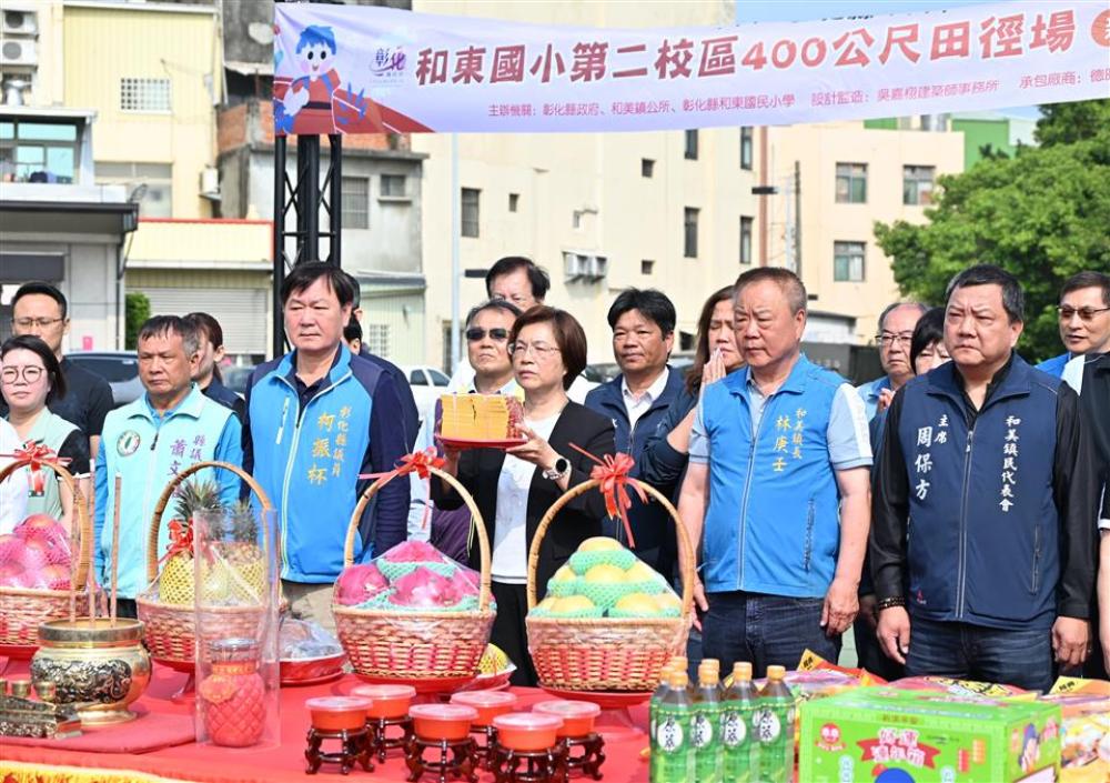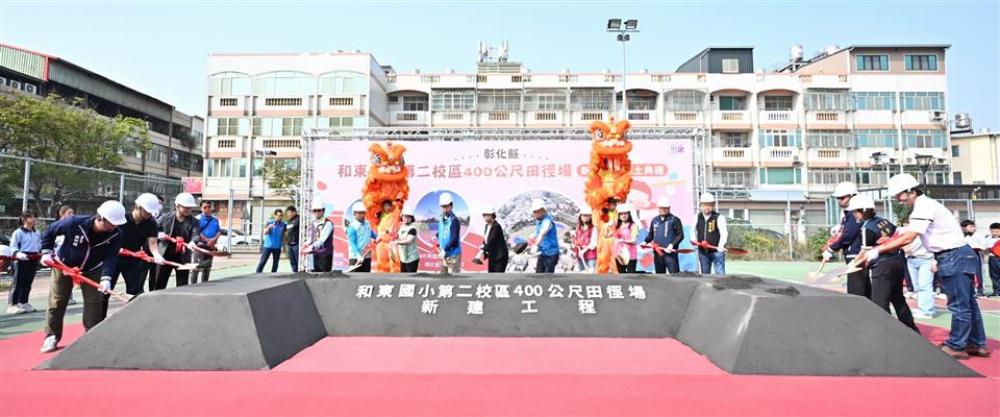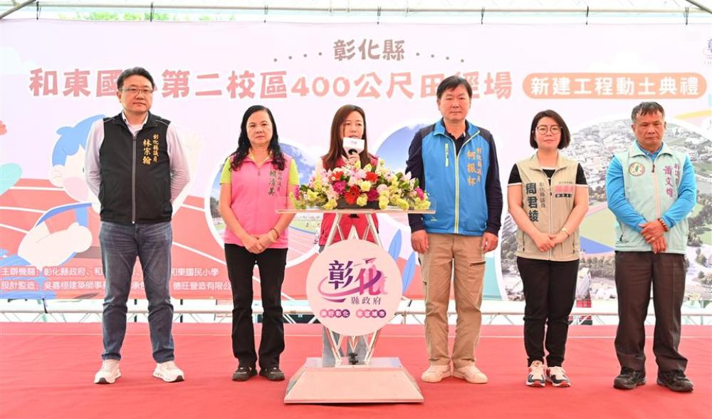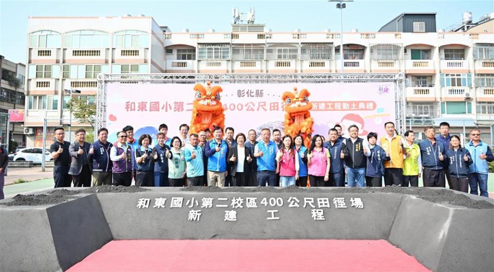 為持續提升運動環境,彰化縣政府與和美鎮公所攜手於和東國小第二校區預定地規劃打造運動園區。今(19)日上午舉辦400公尺田徑場動土典禮,彰化縣長王惠美、和美鎮長林庚壬及各級民代等人與會。王縣長表示,和美人口近9萬人,每到鎮運或大型運動賽事缺乏選拔體育選手的訓練場地以及廣闊便利的運動空間,因此與林庚壬鎮長共同規劃,感謝議長謝典霖與議員們的支持,以及地方代表的支持下,共同促成,期待未來讓運動選手就近就有優質運動訓練場地。 王縣長表示,運動園區總面積規劃超過4公頃,首先打造總經費7,630萬的競技級400公尺田徑場,預計今年底完工,另外和美全民運動館將於今年4月開幕,屆時歡迎鄉親踴躍使用共創運動風氣。 王縣長指出,在過程中感謝縣議員林小琪也是彰化縣彰美慢速壘球協會主委,原本很多鄉親都在這場地打壘球,也有運動跳舞的鄉親朋友,為了讓場地更完善,犧牲目前使用權益,也感謝在這過程中協力的所有人及單位,讓工程順利推動。 和美鎮長林庚壬表示,感謝王惠美縣長縣府團隊的用心及支持,以縣有地規劃,以及所有議員及代表會全力支持,讓和美建設逐步落實。除本座田徑場外,和美運動館、社會住宅及預計年底通車的和美大橋都在進行中,施工期間難免帶來噪音與不便,請鄉親多多包涵,共同期待各項建設陸續完工。 縣議員林小琪代表致詞表示,忠全運動公園是鎮民重要的休閒核心區域,無論早晚都有許多鄉親在此慢跑、打球,尤其慢速壘球比賽更是地方盛事。感謝王縣長、林鎮長及議會同仁的全力支持,讓這項地方期盼已久的建設得以實現。 和美鎮民代表會主席周保方表示,感謝王縣長縣府團隊及林鎮長的用心,共同打造適合鄉親運動的好去處。 教育處表示,縣府長期致力推動「運動大縣」,在最新運動縣市評比中,彰化縣公有運動場館開放數量為非六都第一,展現推動全民運動的成果。目前縣府積極推動「八大生活圈全民運動館」計畫,除已營運的彰北與彰南國民運動中心外,備受期待的「和美全民運動館」預計於今年4月開始營運。未來和美全民運動館將與今日動土的運動園區相互串聯,建構運動生活圈,讓運動融入鄉親日常,共同打造健康活力的「美好彰化 希望城市」。 與會貴賓有議員林小琪、林宗翰、周君綾、柯振杯、賴清美、蕭文雄、立法委員陳秀寳服務團隊、和美鎮長林庚壬、和美鎮民代表會主席周保方、副主席高秀麗、教育處長蔡金田、工務處副處長陳銘男、和東國小校長柯伯儒、和東國小家長會長張傑綸、吳嘉栩建築師事務所經理張子綸、德旺營造有限公司總經理黃春德、各級民意代表及地方仕紳等。