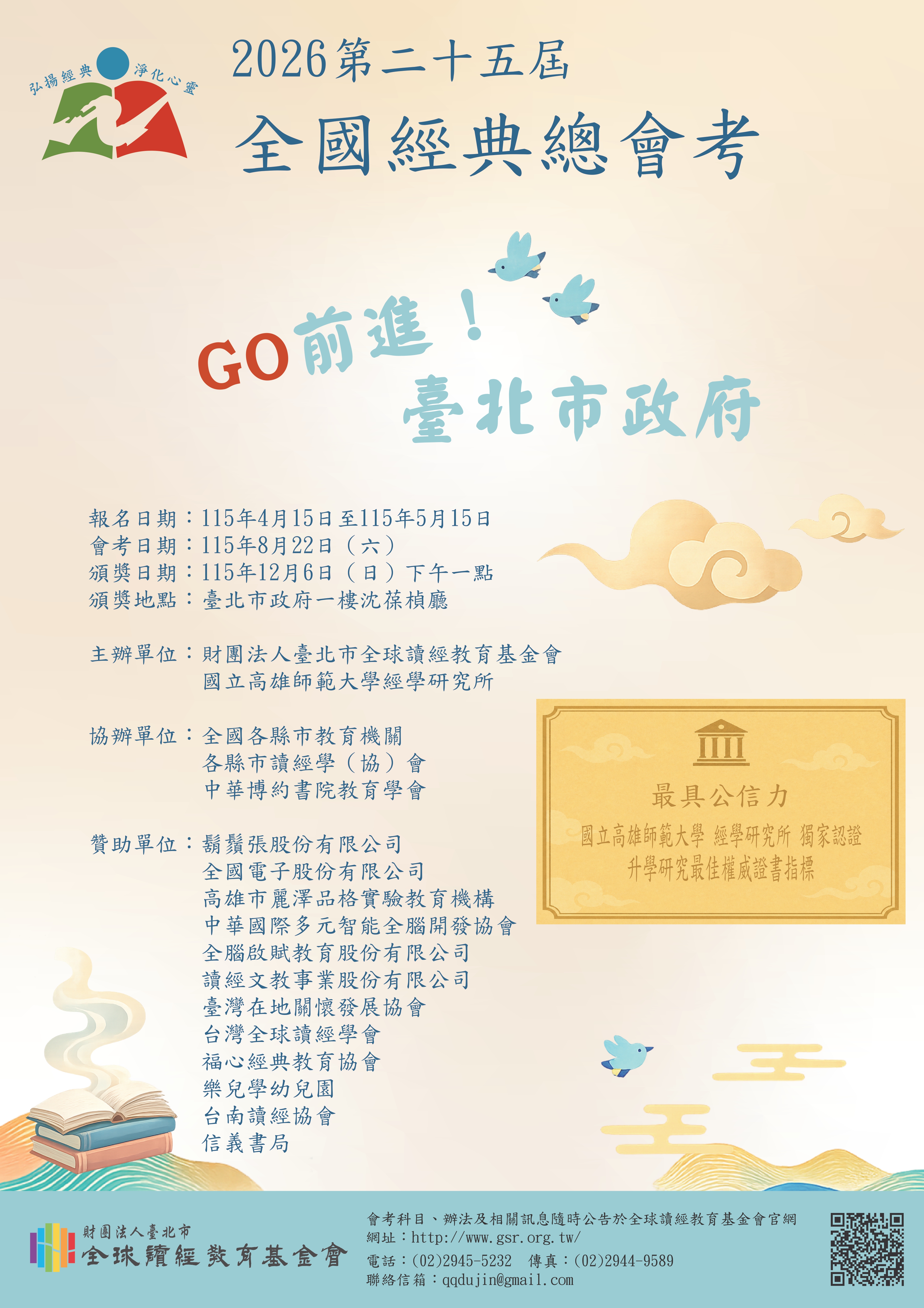 第25屆全國經典總會考科段一覽表.pdf 第25屆全國經典總會考簡章.pdf 2026經典誦讀獎認證報名簡章.pdf |