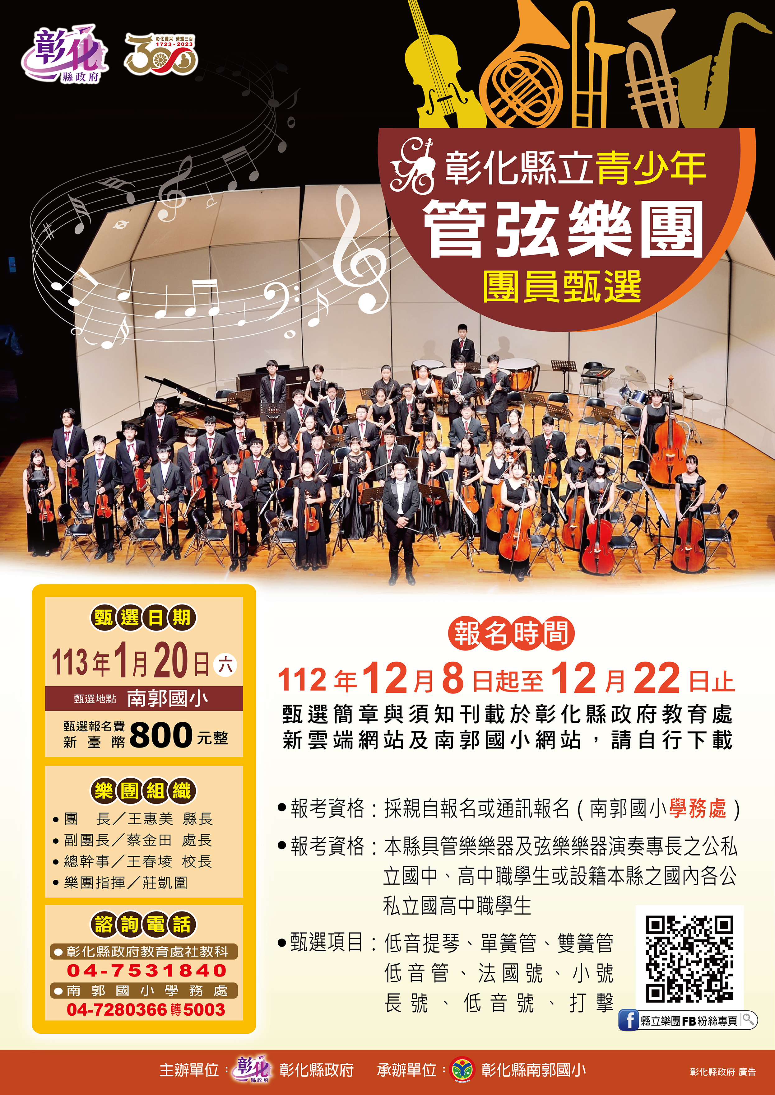 彰化縣立青少年管弦樂團暨兒童弦樂團團員甄選簡章