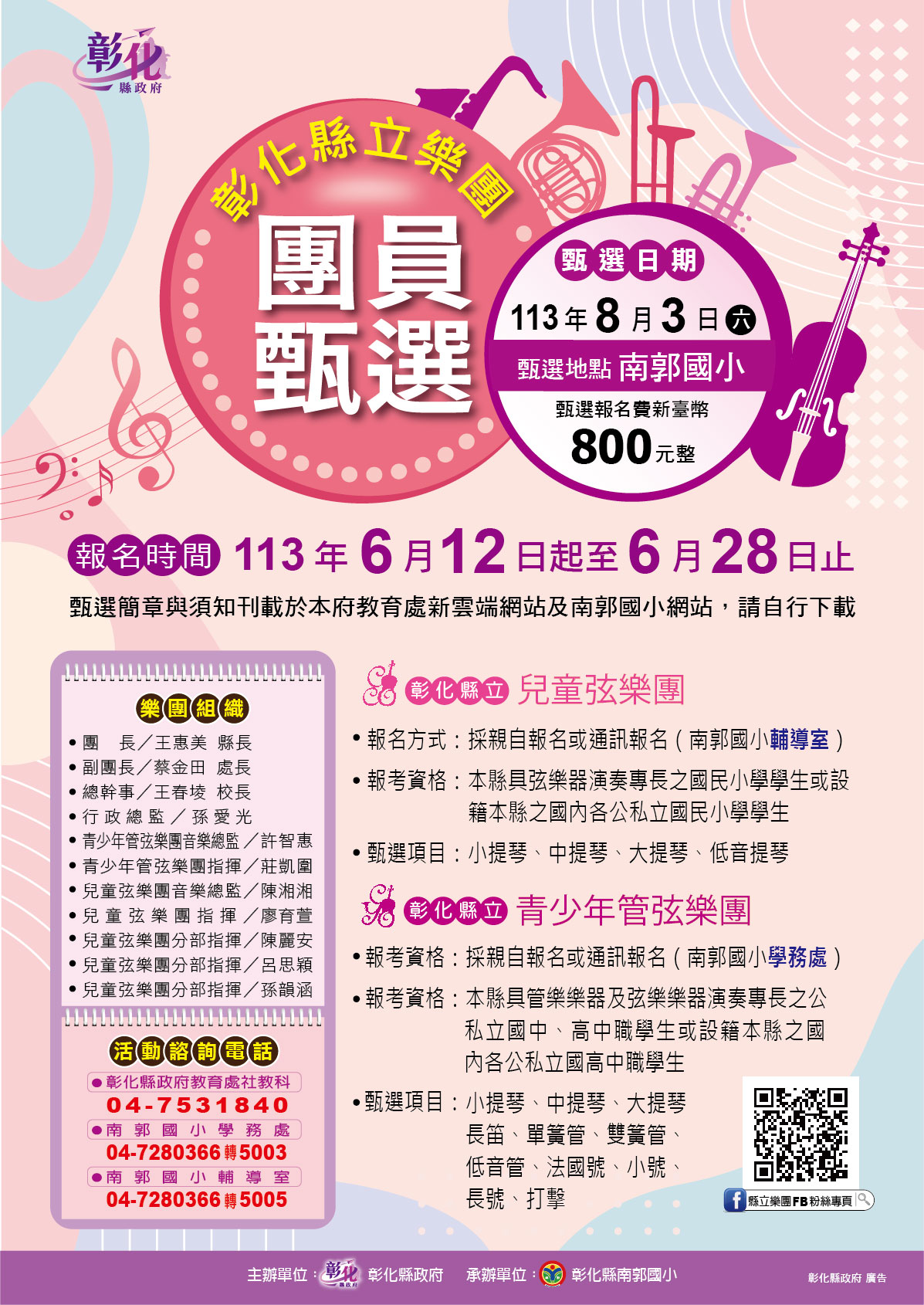 彰化縣立青少年管弦樂團暨兒童弦樂團團員甄選簡章